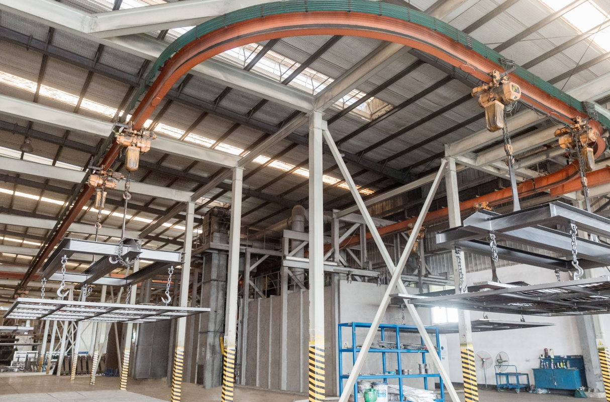 涂裝處理流水線1條,可實(shí)現(xiàn)各類結(jié)構(gòu)件產(chǎn)品涂裝作業(yè)